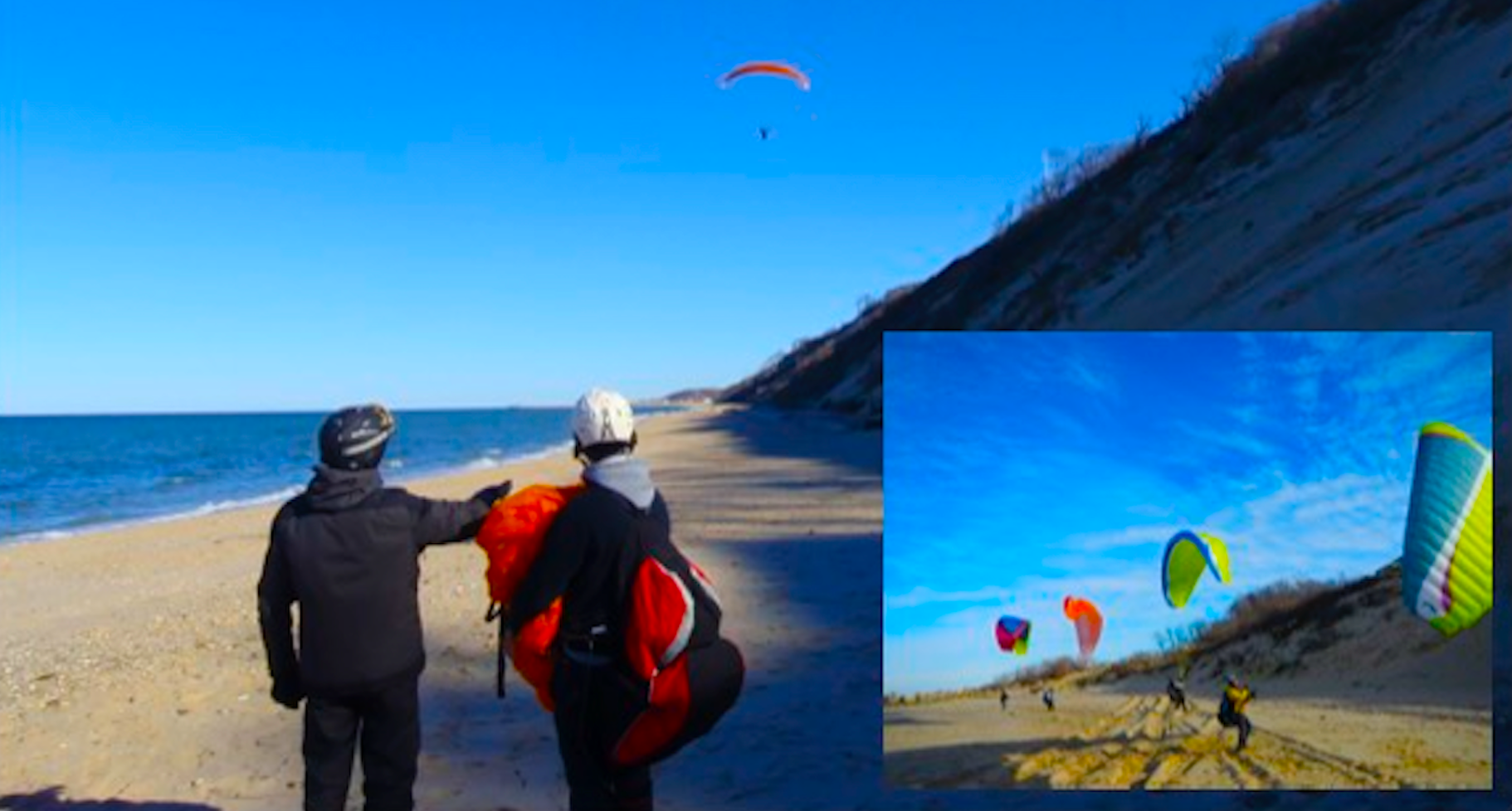 Long Island can offer excellent soaring coastal conditions for both Paragliding and ParaKiting but first things first and it is important to understand that a PK wing is not a PG glider even if in appreance they look similar. Learning the Paragliding basics is the safe way to approach ParaKiting. Two different specialities to be apprecited within their own context. Please contact the school for more information if interested in learning more about PK (ParaKiting).
